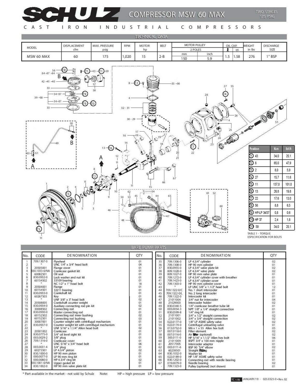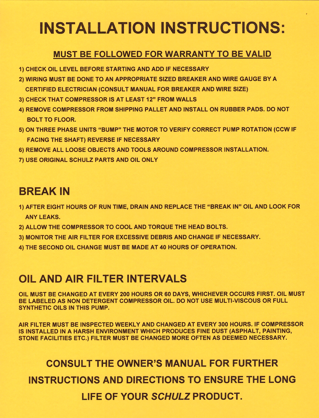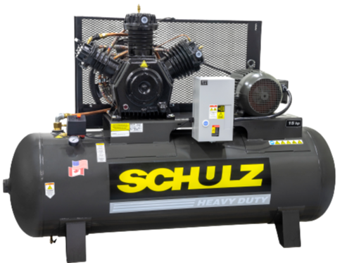 SCHULZ AIR COMPRESSOR - 15HP THREE PHASE - 120 GALLONS HORIZONTAL TANK - 208-230-460 VOLTS 932.9337-0